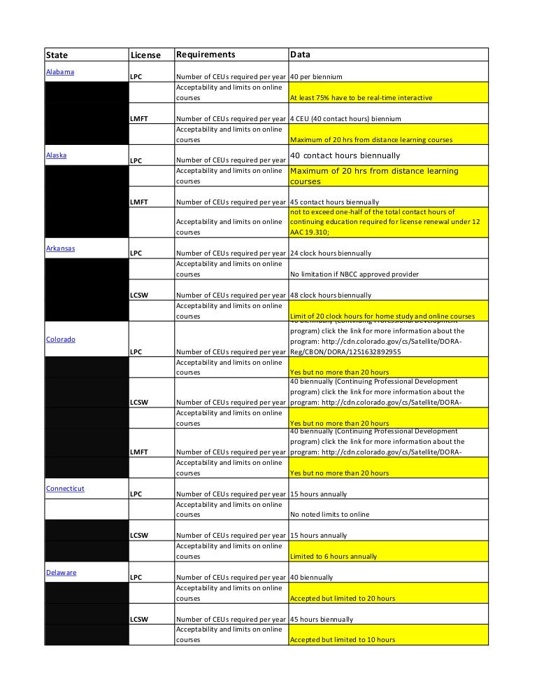 Alcohol and Alcohol Use Disorders. Convenient packages designed to help meet your Texas Social Work license requirements. The following number of Ethics continuing education hours are required for licensure renewal in the following states.